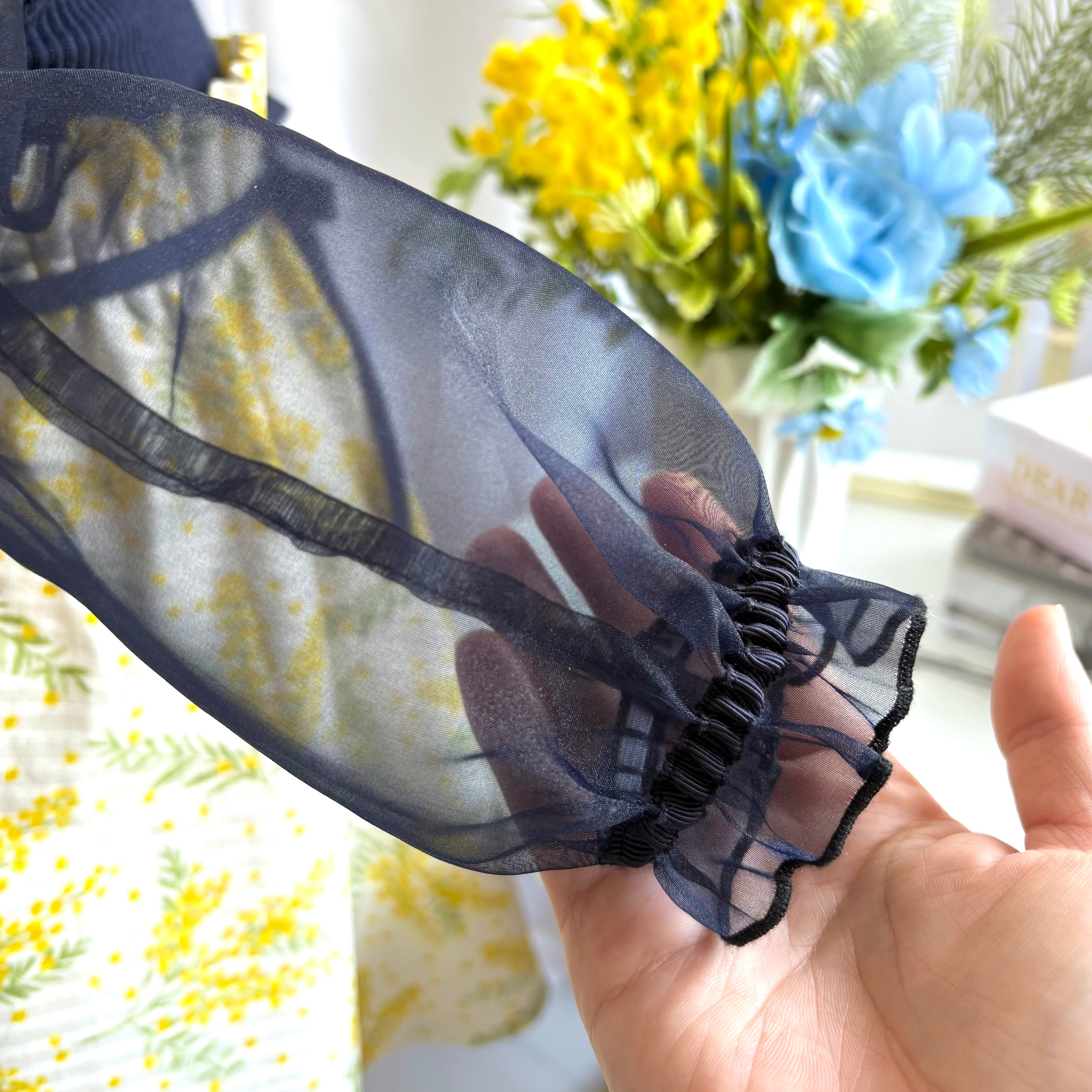 袖にはリブニットと同じネイビーorホワイトのオーガンジーを使用。
