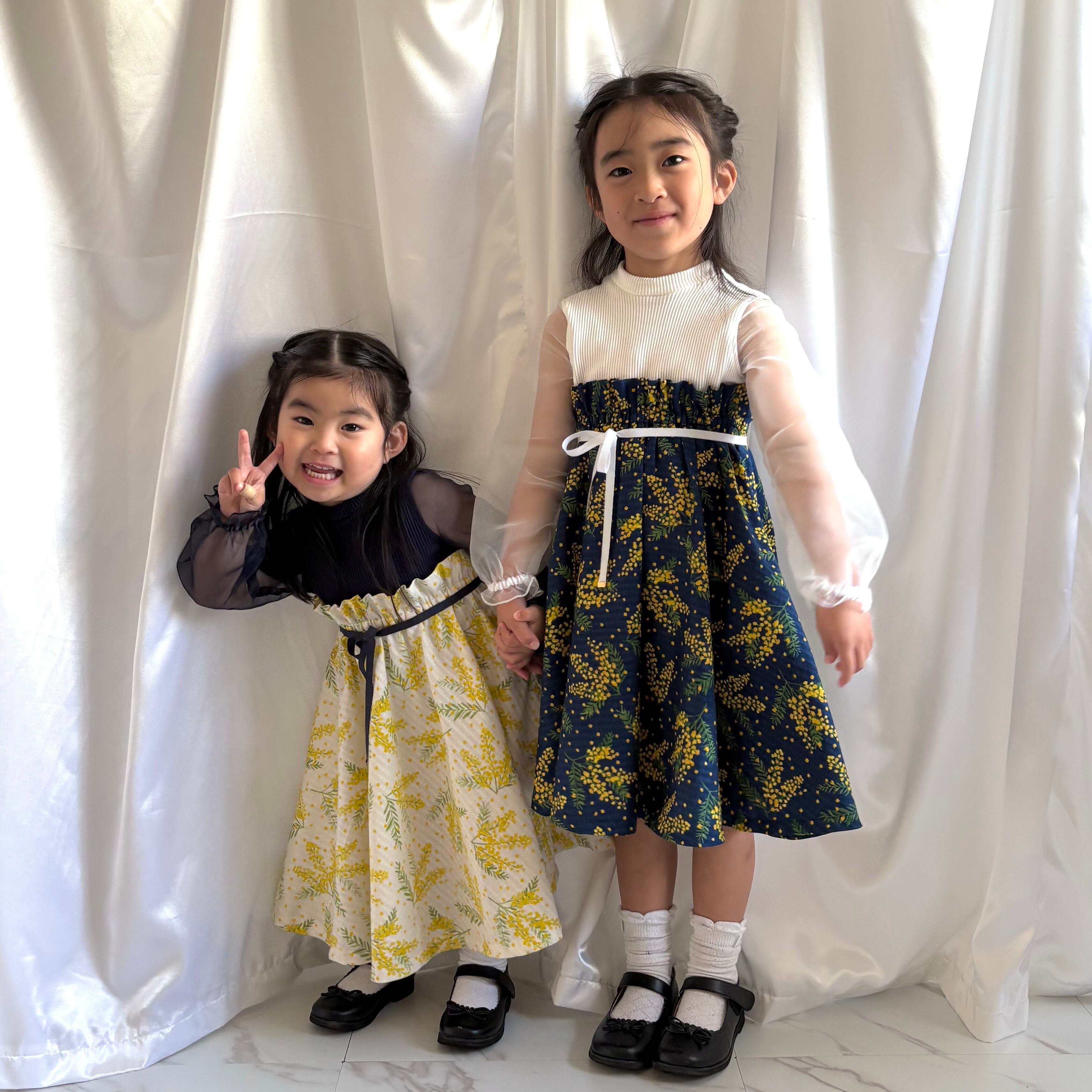 #ミモザ#ミモザワンピース#ミモザキッズワンピース#姉妹お揃い#姉妹お揃いワンピース#年の差姉妹お揃い#年の差姉妹#親子お揃い#親子お揃いワンピース#ミモザワンピース親子#80cmワンピース#90cmワンピース#100cmワンピース#110cmワンピース#120cmワンピース#130ワンピース#140ワンピース#150ワンピース#160ワンピース