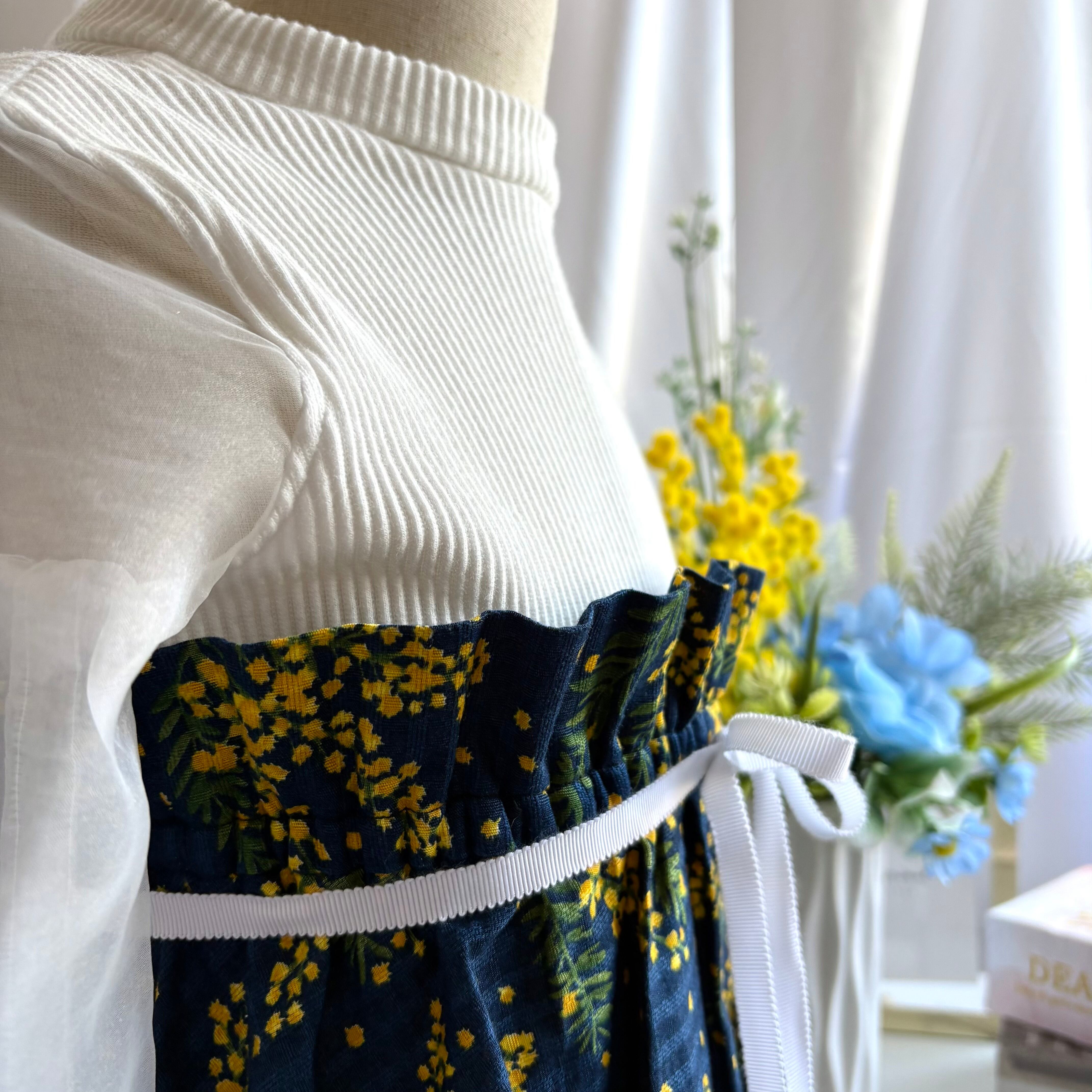 ミモザのかわいらしい雰囲気を活かしつつ、まるでブーケのような上品なワンピースに仕上げました。