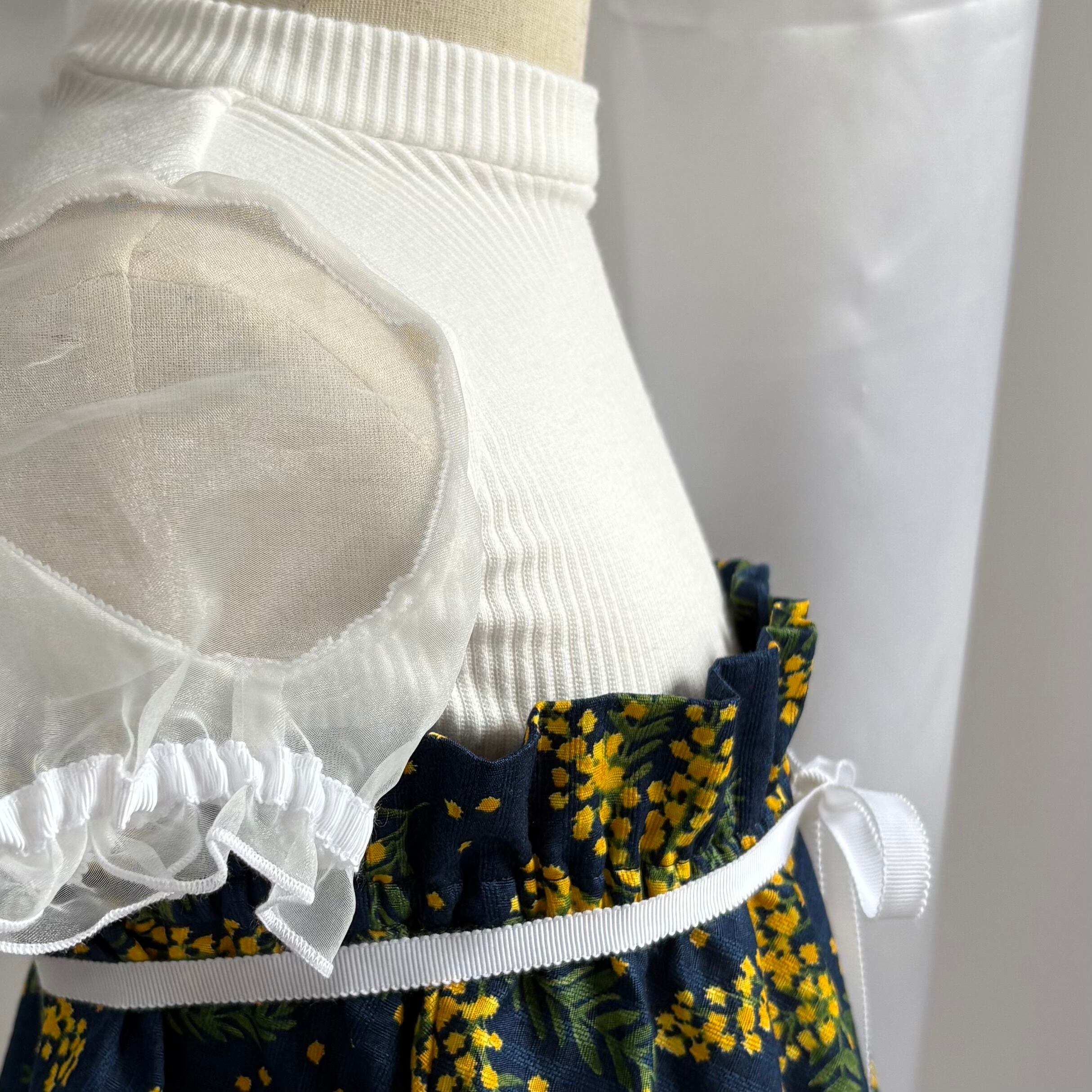 袖にはリブニットと同じネイビーorホワイトのオーガンジーを使用。