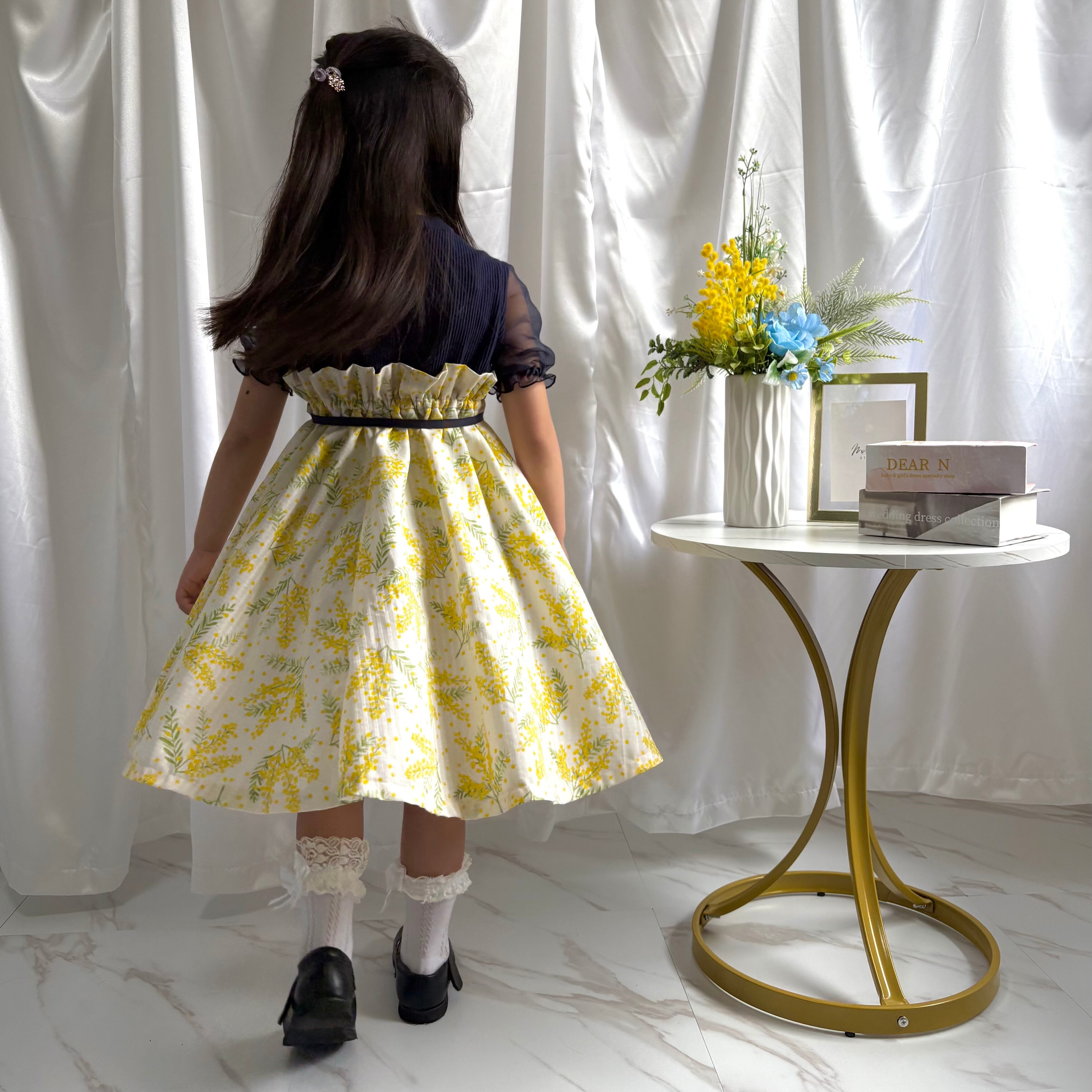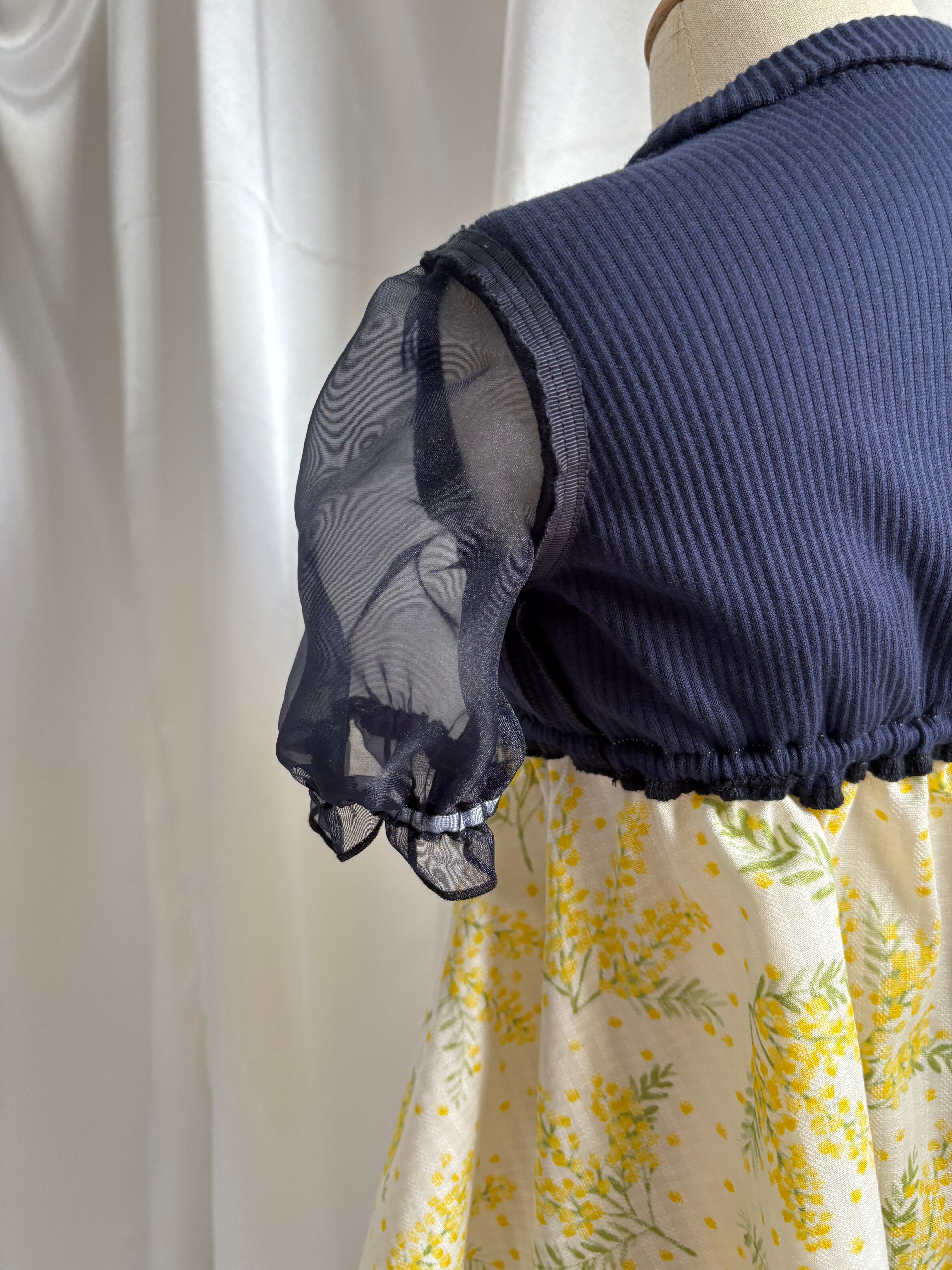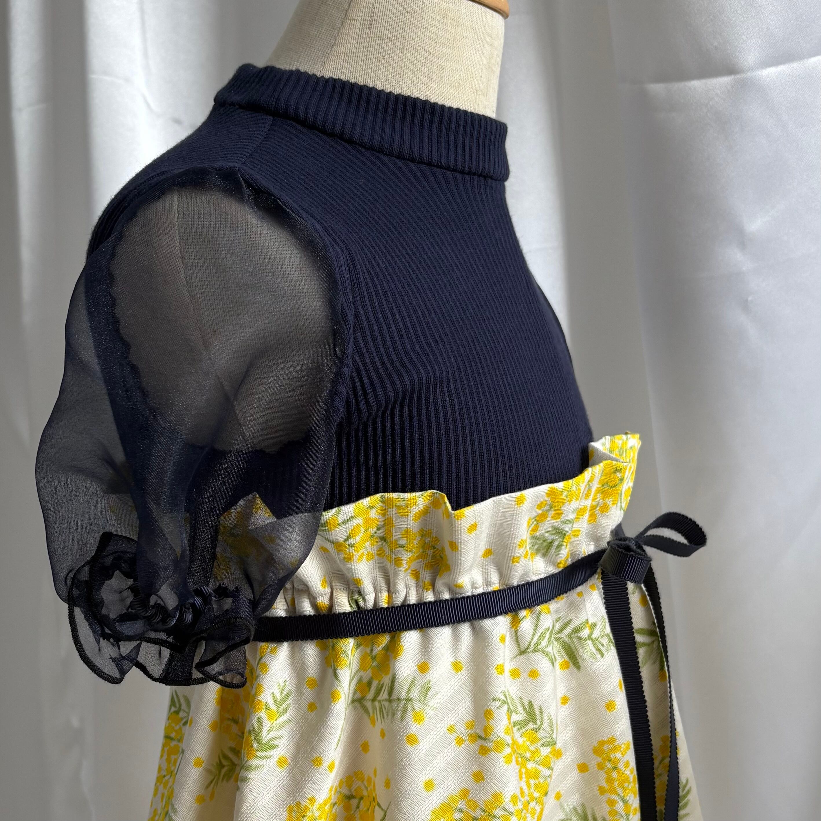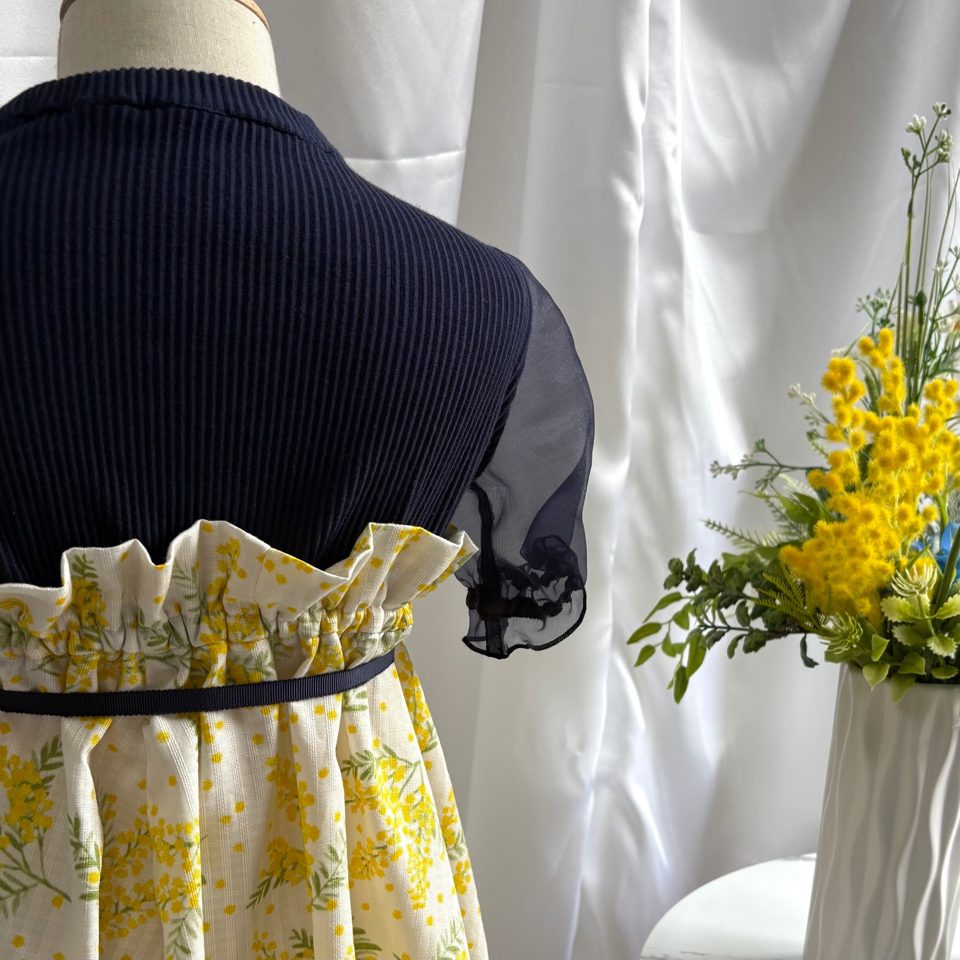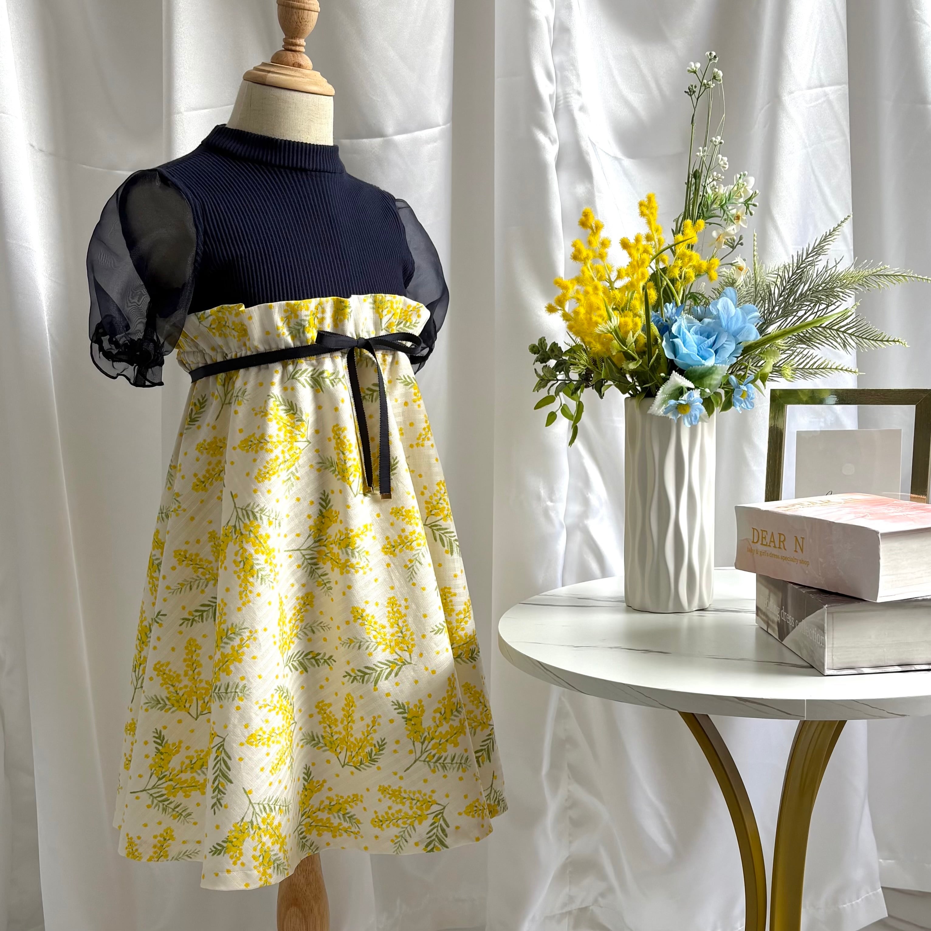ミモザのかわいらしい雰囲気を活かしつつ、まるでブーケのような上品なワンピースに仕上げました。